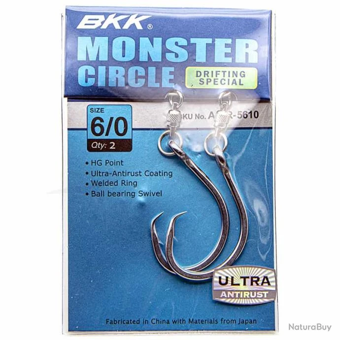 Hameçons BKK MONSTER CIRCLE montés avec un rolling spécial pêche au broumé.